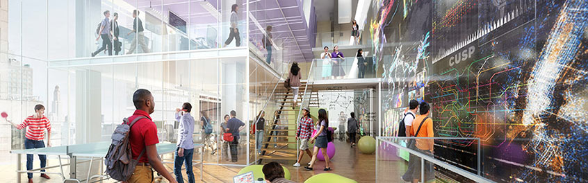 In 2012, Mayor Bloomberg designated a major new applied sciences campus—NYU’s Center for Urban Science and Progress (CUSP)—in Downtown Brooklyn to tackle urban challenges with New York City as its laboratory and classroom. CUSP will set the research agenda for “the science of cities” and will “educate the next generation of engineers in how to apply that research, bring innovative ideas to a world market, and create a new, fast-growing,