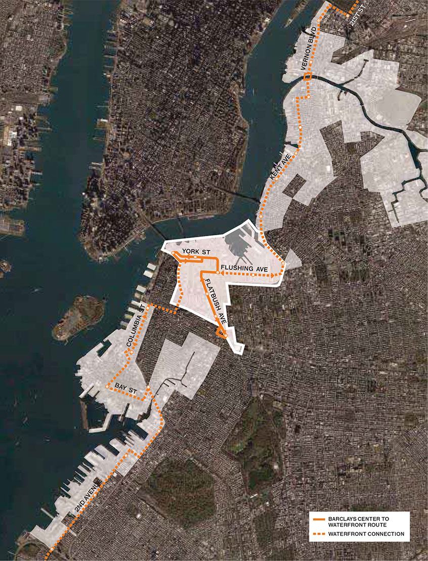 Williamsburg, linking L train stops to the Navy Yard and to DUMBO.